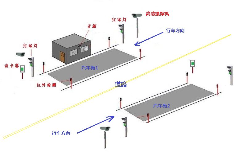 系統(tǒng)由靜態(tài)電子汽車衡(地磅、磅秤)和自動稱重管理系統(tǒng)組成,用于進出廠物資的稱重計量,汽車衡(地磅、磅秤)稱重方式為雙向靜態(tài)整車計量。汽車衡(地磅、磅秤)由一臺計算機進行稱重管理,汽車衡(地磅、磅秤)現(xiàn)場還安裝有車輛定位裝置、紅綠燈、射頻讀卡器、圖像抓拍裝置、語音提示等設備,實現(xiàn)稱重過程的自動化管理,規(guī)范稱重過程,保證計量結(jié)果的準確、真實、有效。